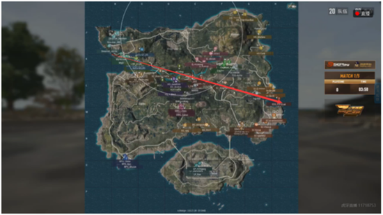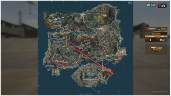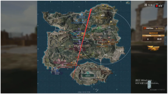 本局比赛航线较偏,从左往右,从G港上城区飞往L港下方海域。对于争夺G港沿线、监狱的队伍较有优势。安全区刷在了以靶场为中心的地图上方区域。