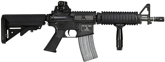 当然,为了使美国的精锐特种部队成员们也用上可击发SS109型步枪弹的新枪,缩短型M16A2计划也是立刻就提上了日程。毕竟这些美军精锐主要的任务都是潜入斩首这样的中近距离战斗任务,所以枪械只需要在必要的射程范围内保证精确度即可。于是脱胎于M16A2的M4卡宾枪就此诞生(注意是M4并不是M4A1)。可以说除去尺寸外,M4和M16A2是高度相似的。事实上M4和M16A2全枪80%的零件可以相互替换,所以在配发初期M4也被称为了M16A2卡宾枪。
