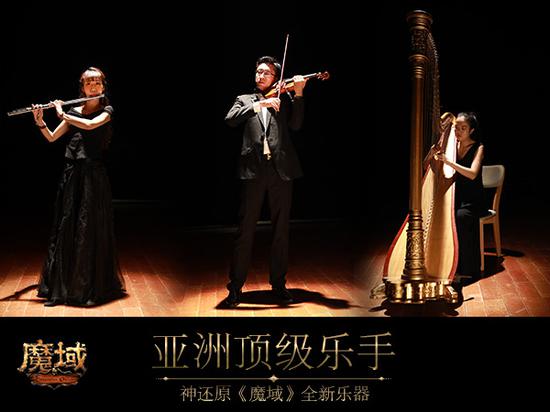 而为了神还原新资料片中的精美乐器小提琴、竖琴、长笛,《魔域》也点名找到了亚洲爱乐乐团团中的顶级乐手,如首席小提琴家:乐团里的85后小提琴演奏家纪新,3岁随父亲学习小提琴,9岁便成为北京少年室内乐团小提琴首席,先后随团赴美国、日本、德国等国家演出,获得国内资深行家的一致好评。此外,长笛演奏家高珊、竖琴演奏家黄群也都是非常年轻有实力的演奏家。
