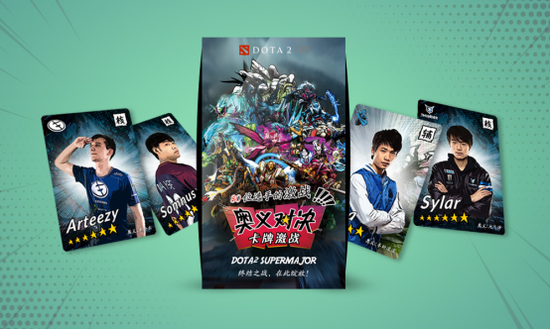 6月9日-10日期间,凡亲临DOTA2 Supermajor赛场的玩家都可领取一包“奥义对决”卡牌尊享包。该卡包内囊括五张完全随机的卡牌,每位玩家每天仅可于检票时领取一次卡包。