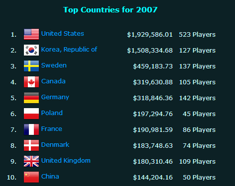 以2007年为例,Sky在冲击WCG三连冠的道路上,遗憾失利获得亚军,而令人更加失望的是,数据显示,2007年世界全年的各项电竞赛事,中国仅有50位玩家染指奖金,作为对比的是,美国有523位,韩国有127位,总奖金排名上,中国也从2006年的前五下滑到第十;到了2008年,全世界进行的电竞赛事共计485项,在中国举行的更是寥寥无几。
