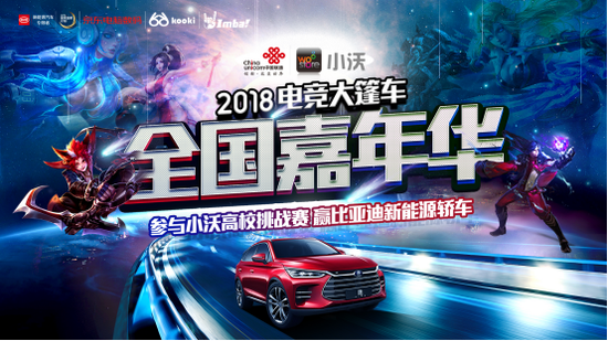 由联通小沃主办的电竞大篷车全国嘉年华高校联赛是由学生组成队伍代表学校参赛的全国高校电竞联赛,比赛项目为《王者荣耀》,本次赛事提供给高校学子一个娱乐、竞技、展示自我的平台,并将提供丰厚的奖金,更有劲爆大奖比亚迪新能源汽车等你来赢!作为本次赛事的金主赞助,“新能源汽车引领者”比亚迪也将在最强王者的电竞之路上载你一程,带你在追梦的路上奔逸绝尘,登临绝顶,成就“一顾之驾驭满天下”。