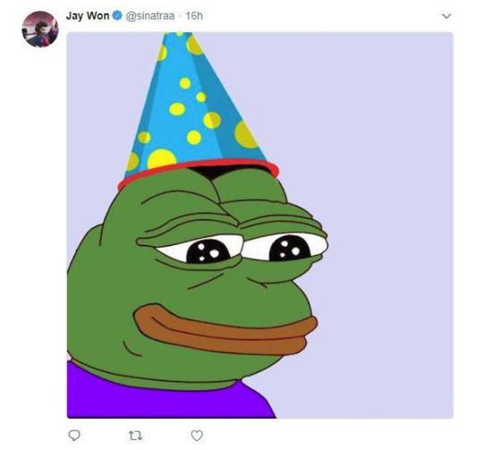 就是这位仁兄悲伤蛙Pepe原本只是美国艺术家马特•弗里创造的漫画角色,最早走红于国外贴图网站4Chan,原本只是被网友用来表达失望、悲伤、受挫等心情。然而在2015年,美国一些极端主义者将Pepe这个角色与白人至上主义捆绑在一起,Pepe开始逐步沦为极端主义的代表。2015年10月,还是总统候选人的川普在推特上转发了自己Pepe蛙形象漫画,无数媒体和川普的竞争对手将这作为川普是白人至上主义者的最佳证据,借此大做文章,从而导致Pepe的形象完全变味。
