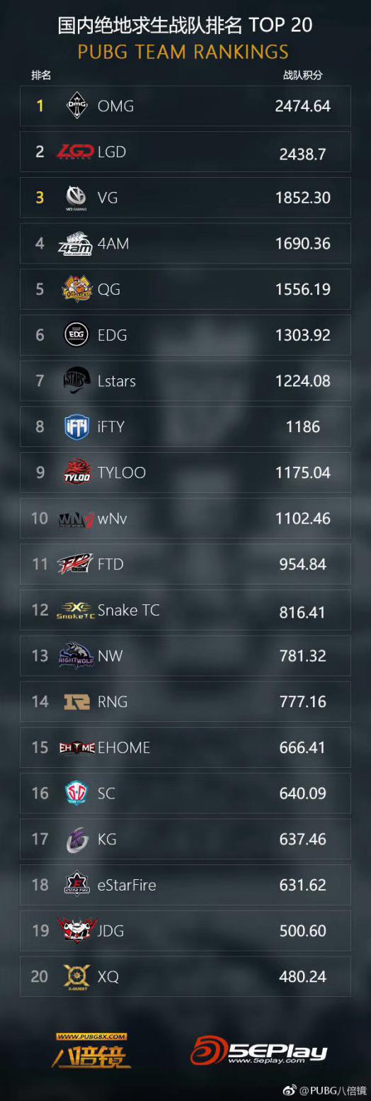 而对于OMG来说,证明他们的不仅仅是一场PGL赛事。在IET国际邀请赛中,OMG拿到了总成绩冠军;韩国G-star邀请赛上,OMG单双排总成绩季军;常州PTS俱乐部超级邀请赛中年OMG再次获得总成绩冠军;PGL国际赛决赛 OMG总成绩第五,亚洲第一;澳洲ZIMO亚洲邀请赛,OMG团队总成绩季军,队员小狮子SOLO赛亚军;三星玄龙杯绝地求生挑战赛OMG总成绩冠军;APL中国区选拔赛OMG总成绩亚军;鸡皇杯总决赛OMG总成绩季军;AGA绝地求生精英赛OMG总成绩亚军虎牙直播赏金大奖赛季军……在成立还不足一年内的时间内,OMG却用着一系列的成绩证明着自己,综合实力来看,OMG最少可以称为国内顶尖前三职业队之一!