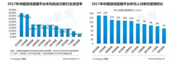 另外,根据近期易观发布的《中国游戏直播市场年度综合分析2018》的报告中显示,虎牙直播仍然39.4%的高渗透率和130分钟的高日均使用时长领跑游戏直播,排名第一。