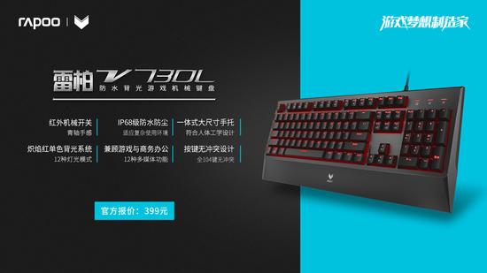 为全面布局网咖新品,将防水防尘设计做到极致,雷柏今日再推出一款拔尖新品——V730L防水背光游戏机械键盘,以扎实、沉稳的姿态浮出水面,售价399元,耐湿,更魅力四“溅”。