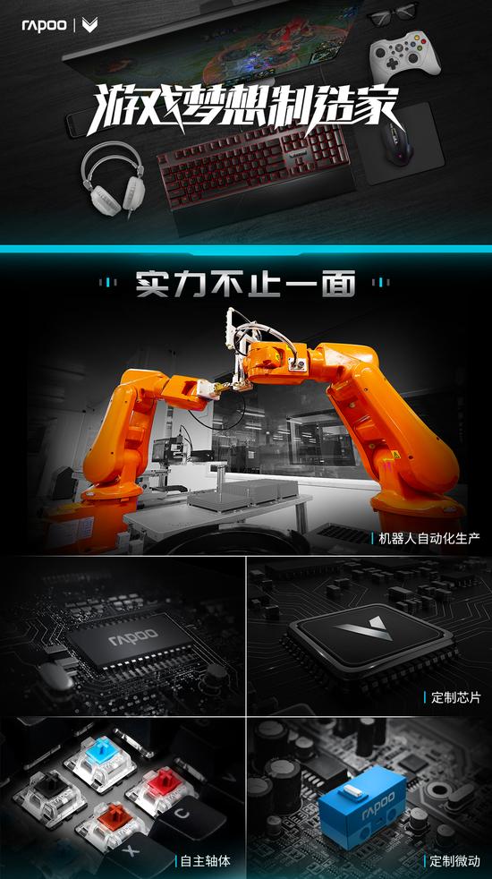 雷柏(RAPOO):老牌实力大厂,国产外设领军品牌 。作为业内的上市企业,雷柏以“游戏梦想制造家”为方向,一直致力用专业的态度为玩家打造舒适的游戏操作体验。采用科学的生产方案、严格的品质管理、机器人自动化产线等行业领先的生产工艺和制造技术,连续多年赢得IF与红点等国际设计大奖。