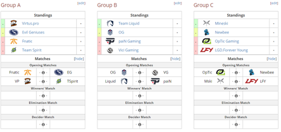 目前赛事分组已出,VG跟强敌Liquid同在B组,C组则是Newbee跟LFY一起。这个比赛赛制小组赛淘汰两支队伍,每组头名还要进行一轮争夺直接晋级四强的加赛。