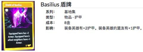 6)Basilius盾牌,一开始我以为是玄冥盾牌,后来经SSDD大佬指点,这个是Artifact暂时独有的装备,是DOTA2中王者之戒的兄弟道具,一个是basilius的戒指,一个是basilius的盾牌