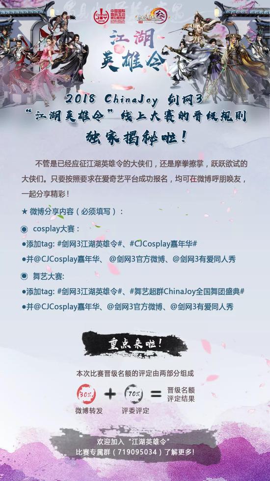 各位江湖侠客看这边!不管是已经应征江湖英雄令的大侠们,还是摩拳擦掌,跃跃欲试的大侠们。只要按照要求在爱奇艺平台成功报名,均可在微博呼朋唤友,一起分享精彩!