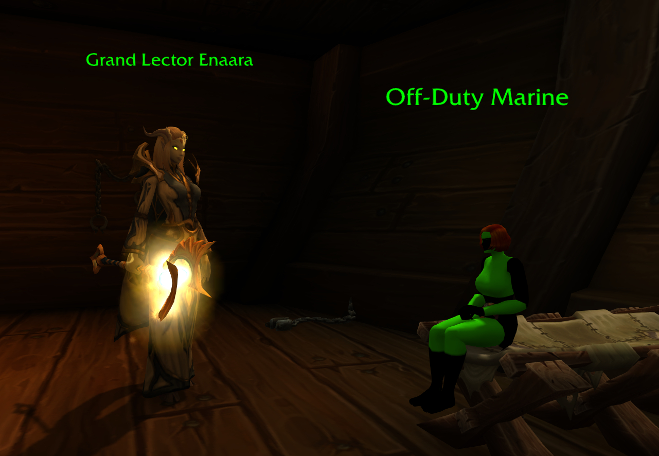 在停靠于伯拉勒斯城的第七军团战舰的船首,我们能看见艾莎·云歌正在那里进行打坐修行。
