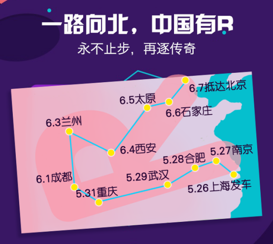 “不忘初心,方得始终”,在RNG获得MSI冠军后,RNG电子竞技俱乐部开始组建城市粉丝后援会!这也是第一次组织线下粉丝活动,活动的主题为“中国有R”,这次的活动形式也是非常特别,粉丝用书籍或文具来换取RNG应援物,这些书籍和文具在活动结束后将统一捐献给希望小学。从上海RNG电子竞技俱乐部出发,途径合肥、武汉、重庆、成都、兰州、西安、太原、石家庄,最终抵达北京RNG主场,在中国版图上点亮一个R标。