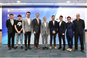 上图(左起)HKU SPACE 电竞课程中心总监周嘉明博士、CGA 联合创办人兼行政总裁周启康、香港电竞总会会长杨全盛、HKU SPACE 院长李经文博士、香港特别行政区政府创新及科技局副局长钟伟强博士、英皇集团执行董事杨政龙、英皇电竞战队总监Toyz刘伟健、英皇电竞业务总监张焯然及 HKU SPACE 生命科学及科技学院副总监张少能博士在现场合影。