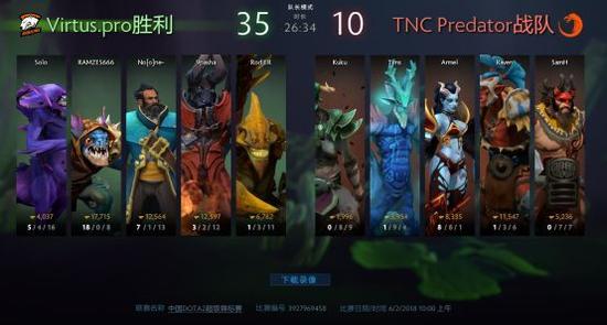 VG与VP在胜者组决赛展开对决,首局比赛,VP通过击杀VG的信使取得线上优势,VG的军团指挥官也惨遭针对,虽然VG中期努力寻找节奏,但VP无解肥的死亡先知让VG难以解决,最终,VG先失首局。第二局,VP在最后一手选出育母蜘蛛,VG的阵容完全无法与之对抗,双方经济早早拉开,而VP石鳞剑士的发挥也为VP制造了不少输出环境,VG在正面完全无法对抗,最终,VP晋级主赛事胜者组。