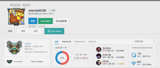 青训选手gentle也上了大师了,分数稍微比大舅子高一点。