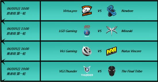 6月5日有两轮胜者组和两轮败者组的比赛,四支中国战队将携手出战,分别是: