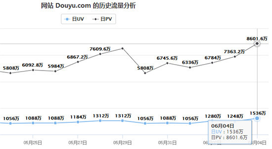 从品牌成立之初,斗鱼一直以内容为平台源动力,无论在主播培养,平台板块优化以及线下活动方面,斗鱼都始终领先于国内的其他平台,而深耕内容对斗鱼平台来说所取得的效果自然不言而喻,近期,国际知名流量平台Alexa展示了最新一期的流量报告,数据显示斗鱼刚刚在6月初刷新了游戏直播平台流量记录,单日超1500万人次访问和8601.6万的流量可谓是相当惊人。