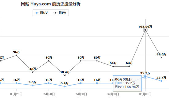 反观同一时期,虎牙数据则仅有数十万,流量也是堪堪突破百万,差距之明显无需多言,而这还仅仅只是PC端数据。
