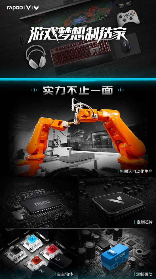雷柏(RAPOO):老牌实力大厂,国产外设领军品牌 。作为业内的上市企业,雷柏以“游戏梦想制造家”为方向,一直致力用专业的态度为玩家打造舒适的游戏操作体验。采用科学的生产方案、严格的品质管理、机器人自动化产线等行业领先的生产工艺和制造技术,连续多年赢得IF与红点等国际设计大奖。