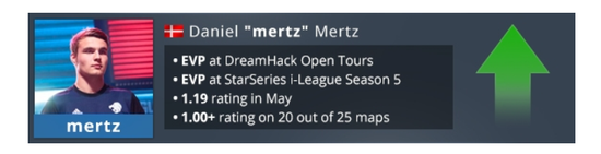 mertz在DreamHack 图尔站与SLi S5接连获得MVP,他的爆发发挥也让他如愿加入North。