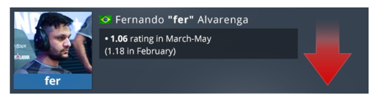 我们最近两个月也在密切关注fer的状态,在WESG和DreamHack马赛中表现平平,在IEM悉尼中发挥不错,而上个月,我们并没有发现他可圈可点的地方。