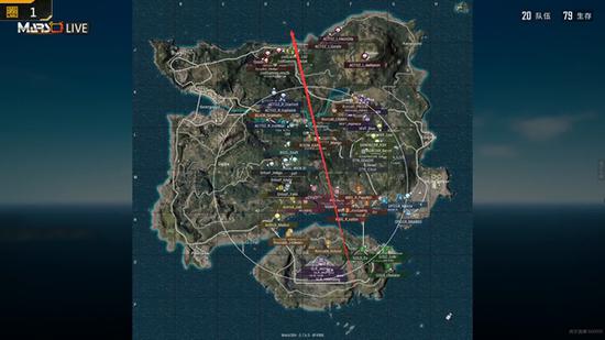 比赛进入第三局,地图也是来到了海岛地图,航线从下方机场正中往北方飞。