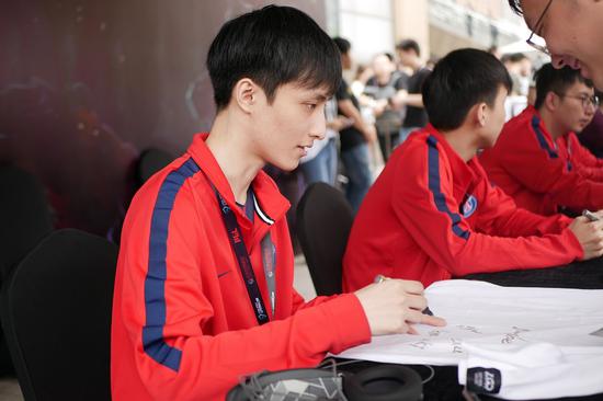 下午2点,首轮粉丝见面会开始。PSG.LGD战队亮相粉丝见面会现场,与玩家亲密互动。现场为玩家免费发放了DOTA2主题海报供选手签名,也有玩家携来自己的周边,使这一签名更为独特。热情的粉丝以自己的行动向战队和选手传递着自己的支持,也表达着对PSG.LGD取得好成绩的期待。