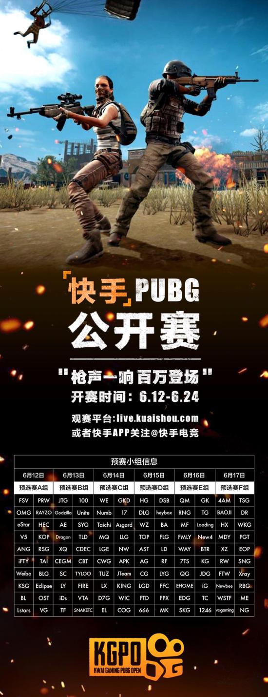 “快手PUBG公开赛”(Kwai Gaming PUBG OPEN)是由快手主办的绝地求生纯线下赛,今晚六点在“魔都”上海正式开战。本次赛事共吸引120支战队参赛,分为预选赛 A、B、C、D、E、F 六组,每天每组 20 支战队进行 Round 4 Squad 比赛,其中第一场为不计分的 FPP 表演赛,后三场为 TPP 积分赛,每组积分前十名的战队获得晋级资格,将于24号争夺最终的冠军头衔。