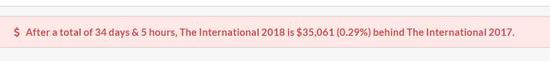 但随后在都没有刺激消费的情况下,TI8奖金在第34天5小时后再度被TI7奖金超越。