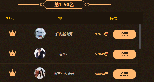 该活动自5月7日0点开始,时长近一个月,在活动期间,每一个每天能够观看CF板块任意十分钟的账号都可以获得3次投票的机会,而如果在CF板块中每消费1鱼翅还可额外获得一票。截止到目前,该评选活动已经结束,让我们一起来看一下入围榜单前三名的主播有何过人之处吧!
