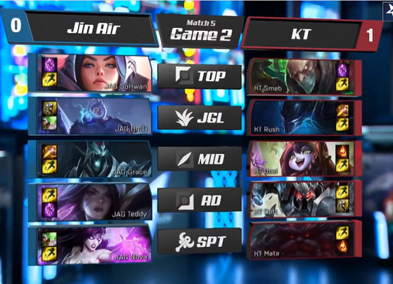 KT打野派出了Rush,JAG则没有派出新签入的KaKao。