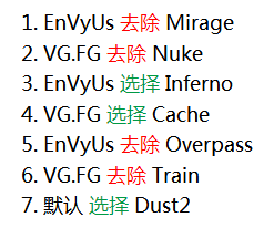 第二张图cache,VG.FG作为T方一波rushB,直接正面刚赢EnVyUs拿下手枪局。接着利用枪械优势接着拿下四分,比分来到5:0。但在第6回合,集中攻B被混烟打死两人的VG.FG无法突破管房两个人的交叉火力,及时选择转点但还是被EnVyUs回防成功,EnVyUs扳回一分至1:5。双方展开拉锯战,比分来到4-8,VG.FG中路夹B包点一波爆弹后结果被hAdji连拿3个人头,EnVyUs又重新回到战场最终上半场7-8暂时落后。