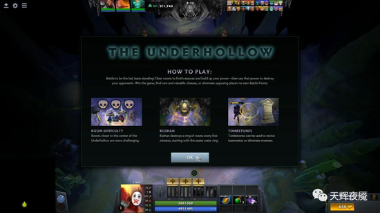 今天,TI8勇士令状专属活动《幽穴风云》正式加入客户端,这是一个需要由24名玩家同时参与的自定义游戏,玩家将被分为8个组在地图上的房间里进行互殴,每组3人,最终存活的或者发现Roshan奶酪的小组即为胜出队伍,他们将获得勇士令状积分奖励。