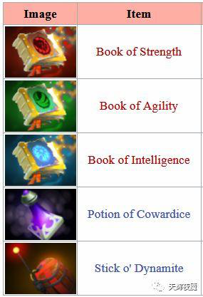 前面3个是经验书,使用后可以永久提升3点对应属性。紫色的小瓶子是隐身药水,吃下去之后可以隐身15秒并提升移速,期间攻击或者施法会显形。最后一个是炸药桶,使用4秒后引爆,造成1000点物理伤害,可以击杀敌人,可以炸开墙壁,也可以以800金的价格售出。
