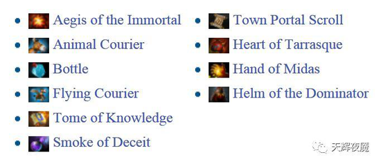 下列物品将不会出现在游戏当中: