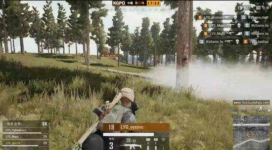 TOP卡圈时候遇到LYG进圈,优秀的枪线展开助他们顺利淘汰LYG。