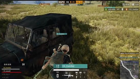 LYG平原处停车遭遇CG,LYG迅速拉开枪线,迅速解决了CG三人,而最后一名CG成员躲在废车后不久也被淘汰。