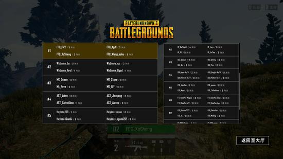 FFC从白圈左侧进圈,以树林作掩体进行作战。FFC的PPY98K精准将WZGAME一人击倒,右侧MK战队意欲趁此进圈被PPY直接拉到近点放倒全员。随后与WZGAME 1V1最终对决,FFC1 2分兵两名成员正面吸引火力,PPY从左侧直接绕后将WZGAME全部击倒,成功吃鸡!