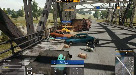 左侧大桥处TC过桥时遇到了TAP的拦截。TAP两名成员开车突点被TAP三名守桥队员开枪打落。后方架枪的TC队员枪法十分精准,利用队友舍命创造的机会将守桥的TAP三人淘汰。