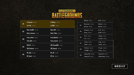 IG战队占据圈内的塔楼,22分兵上下楼不断对想要进攻的敌人进行打击。决赛圈内IG仍然处于安全区内。在顶住IG的火力强行开车贴近的FMLY,清理掉马路对面的SKG后选择强攻IG所在的塔楼,SKG先手打掉了楼下的IG一名队员然后进行闪光弹的投掷,但是闪光弹出现失误把自己闪到了,一楼的IGDDONG直接拉出来配合二楼跳下来的队员解决掉FMLY队员,送走了FMLY战队。最后轻松淘汰掉NEW4的独苗后,IG成功吃鸡!