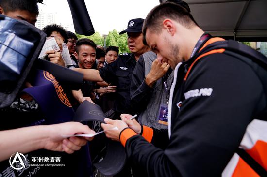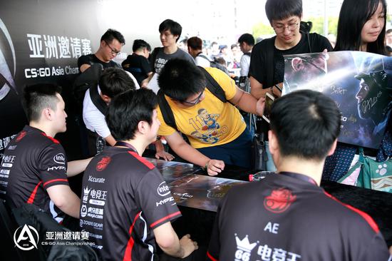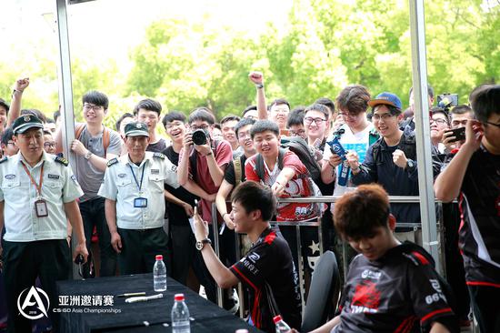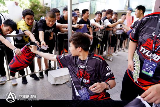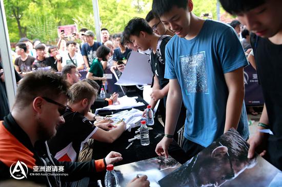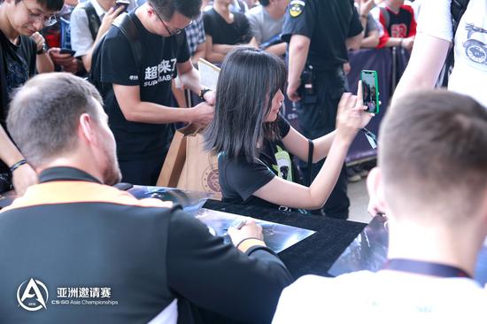 今天下午还有VP、TyLoo、NaVi和EnVyUs的粉丝签名会,现场让国外战队见识到了中国玩家的力量。满场欢呼,拿到签名券的玩家美滋滋。没拿到签名券的玩家,强势围观。让我们来看看签名会吧。