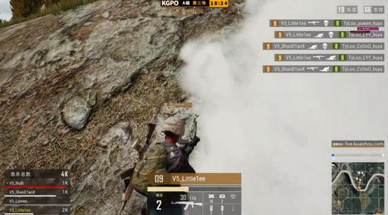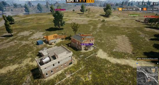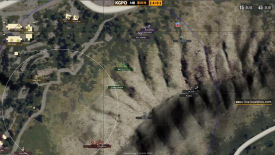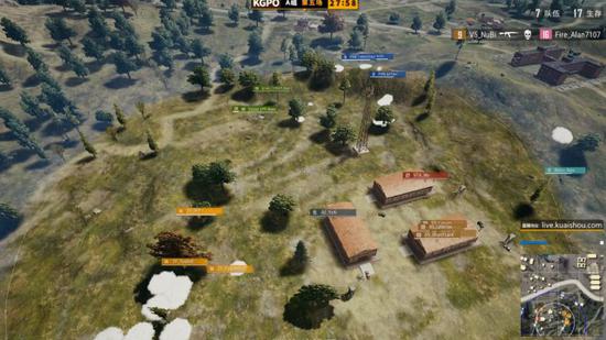 决赛圈以一座小山坡作为战场,坡上战斗情况激烈,坡下Elispe伺机而动。