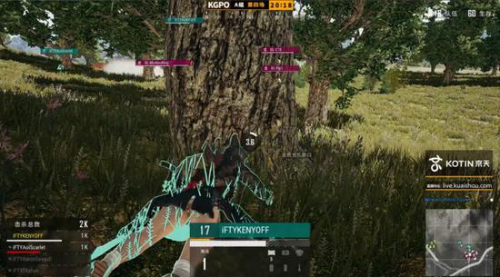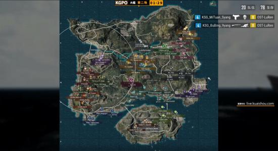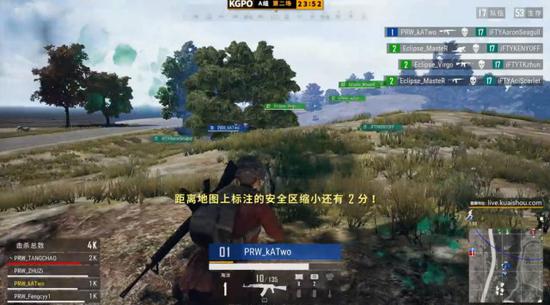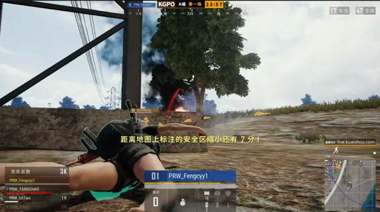 直至决赛圈刷新前,比赛中并未有过多减员情况发生。决赛圈刷新西部野区的一片小树林山坡上,圈外队伍转移时受到了极强的火力打击,右上角存活人数不断锐减。枪声暂时停止时,场上存活的几支队伍围绕山头进行最后的争夺。