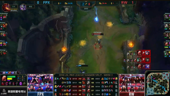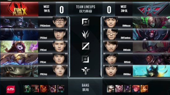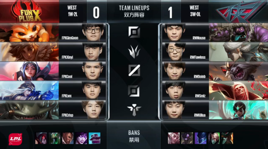 LPL第二周最后一场比赛FPX战队迎战RW战队。