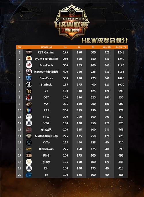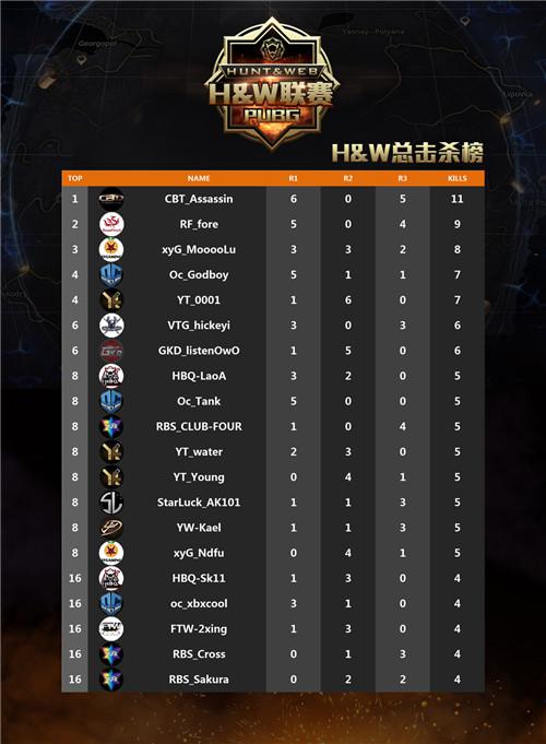 6月24日,《绝地求生》Hunt&Web(以下简称H&W)联赛第一赛季第三轮比赛正式举办了决赛,江阴顺心电子竞技俱乐部(即CBT_Gaming)拿下了积分榜冠军,成为本轮比赛最大的黑马,此外,总击杀榜也由CBT战队的Assassin获得。