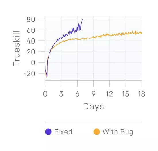 我们仍在修复系统漏洞。下图显示了击败业余玩家的训练代码,相比之下,我们只是修复了一些漏洞,比如训练期间的罕见崩溃,或者导致达到 25 级的巨大负面奖励的错误。事实证明我们可以在隐藏严重漏洞的情况下,依然击败优秀的人类玩家!