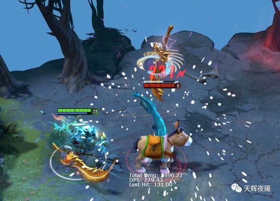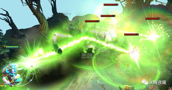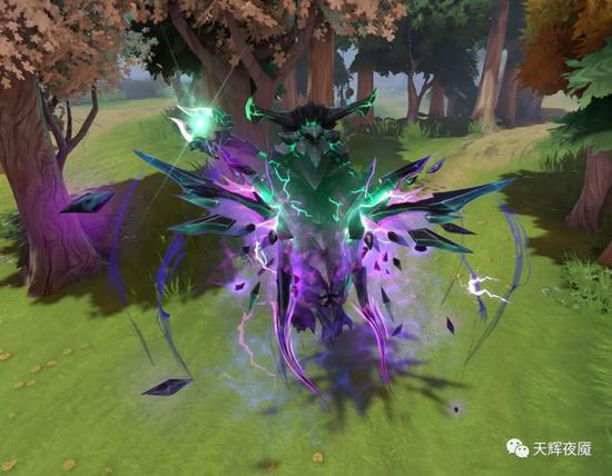 但是当我进游戏试玩大招特效的时候,当我看到紫色、绿色的粒子、碎片、闪电等等等等全部被中央的黑洞吞噬进去的时候,我……惊了,尤其是在屏幕的抖动和独特的声效加成下,整个视觉效果更加震撼,令人过目难忘。个人认为,这是DOTA2里仅次于“世界之渊珍宝”的大招特效。