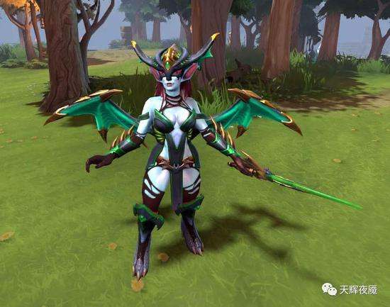 这套有两个特别之处是女王其他所有套装都没有的:①头部带有一对类似吸血鬼的尖牙(仔细看);②改变了腿和脚的外观(虽然脚很丑……但是全DOTA2改变腿和脚的饰品真的很少)。