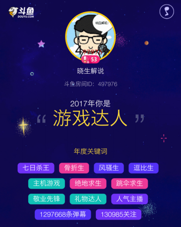 虽然他现在成就斐然却不忘初心,坚持在每天晚上20:00-03:00的固定时间段为观众直播,每个月直播时长高达250个小时。主玩热门主机游戏的他,兼具知识底蕴和文化素养,在他直播间永远有着谈论不完的话题,在晓生解说的斗鱼直播间里,永远都有一座三观正的灯塔在照亮你。