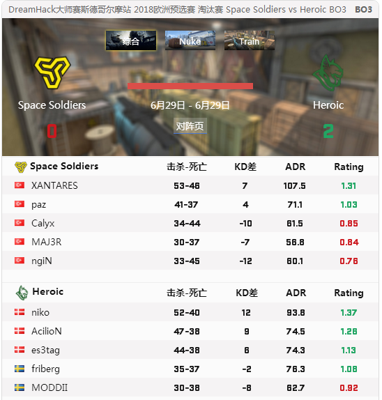 今天凌晨Heroic2:0击败Space Soldiers顺利得到前往DreamHack斯德哥尔摩站的资格。